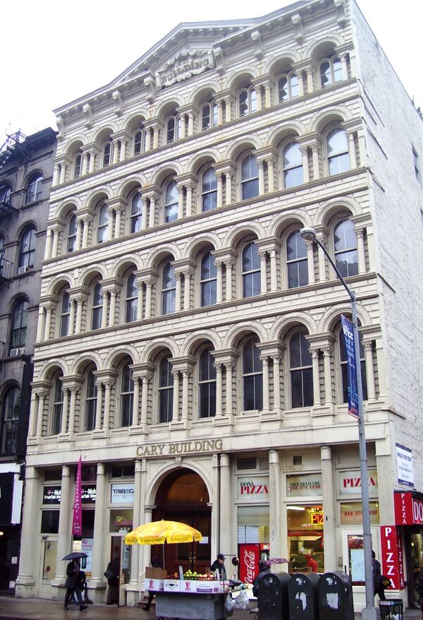 После нескольких простых «конструктивистских» зданий конца 1840-х годов, построенных Богардом, с середины 1850-х до 1860-х годов здания стали возводиться по образцу венецианских палаццо. Примером таких зданий могут служить Кэри-билдинг на Чеймберс-стрит (Рис. 1) и Хауит-билдинг на Бродвее (Рис. 2)[1]. Последнее известно также тем, что в 1857 году в нём был установлен первый в мире лифт компании «Отис»[3].