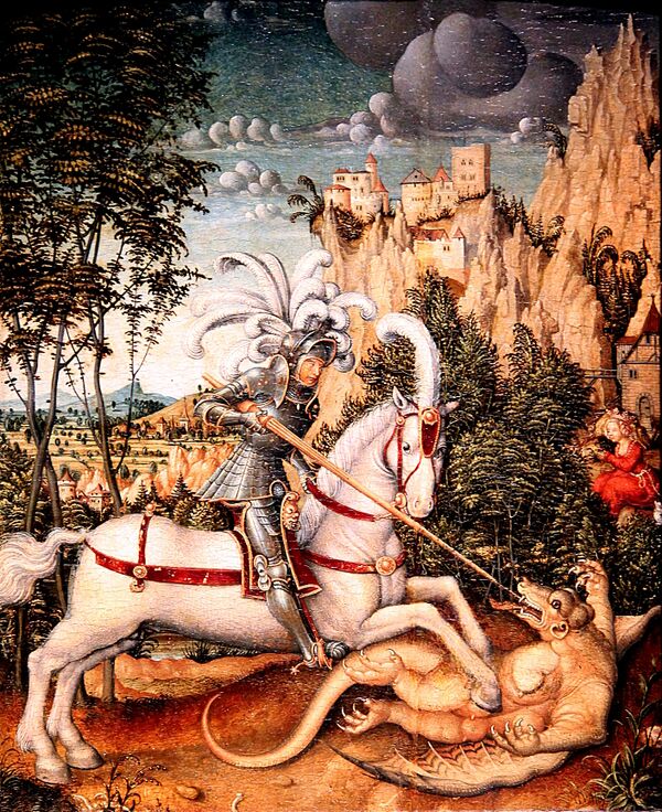 История о Георгии и змие впервые появляется в «Золотой легенде» Якова Ворагинского. Она была легко воспринята и нашла своё отражение в текстах церковных служб, где она сохранялась до реформы, проведенной папой Климентом VII (XVI век), когда часть молитв, в которых упоминалась битва с драконом, была удалена из требников и прочих церковных книг, и он превратился просто в святого мученика, находящегося у небесного престола рядом с Христом[10].