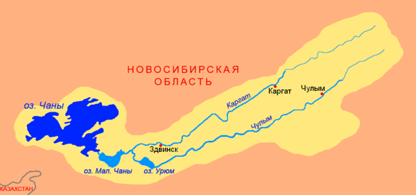 Чулы́м — река в Новосибирской области, относится к бассейну внутреннего стока. Берёт начало в Васюганских болотах и впадает в озеро Малые Чаны, проходя через крупные проточные озёра — Урюм и Саргуль. Длина реки — 392 км, водосборная площадь — 17900 км².[2]