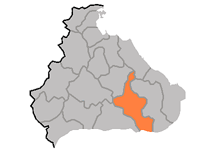 В состав уезда входят один город и шестнадцать деревень[1]. Административный центр — город Чхандо.