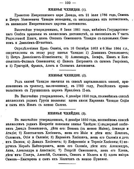 - Собственно князья Чхеи́дзе (груз. ჩხეიძე) — титул подтверждён в 1850 году (для второй и третьей ветви рода) и 1861—64 годах (для первой).