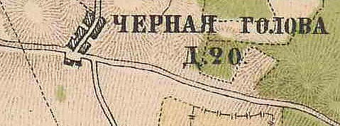 ЧЁРНАЯ ГОЛОВА — деревня владельческая, при колодцах, 7 дворов, 17 м. п., 16 ж. п. (1862 год)[13]