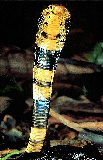 Домен: Царство: Подцарство: Без ранга: Без ранга: Тип: Подтип: Инфратип: Надкласс: Клада: Клада: Класс: Подкласс: Клада: Инфракласс: Надотряд: Отряд: Клада: Подотряд: Инфраотряд: Надсемейство: Семейство: Род: Вид: Чёрно-белая кобра |