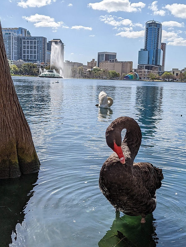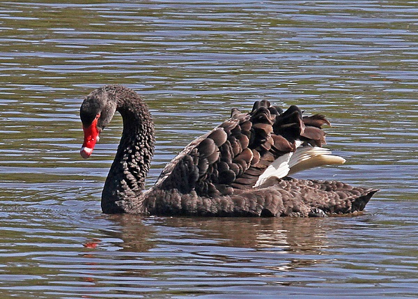 Чёрный ле́бедь (лат. Cygnus atratus) — крупная водоплавающая птица семейства утиных, вид лебедей, который гнездится преимущественно в юго-восточных и юго-западных регионах Австралии. На территории Австралии чёрный лебедь ведёт кочевой образ жизни, его миграции зависят от климатических условий. Это крупная птица с чёрным оперением и красным клювом. Чёрные лебеди моногамны, оба родителя участвуют в насиживании яиц и выкармливании птенцов.