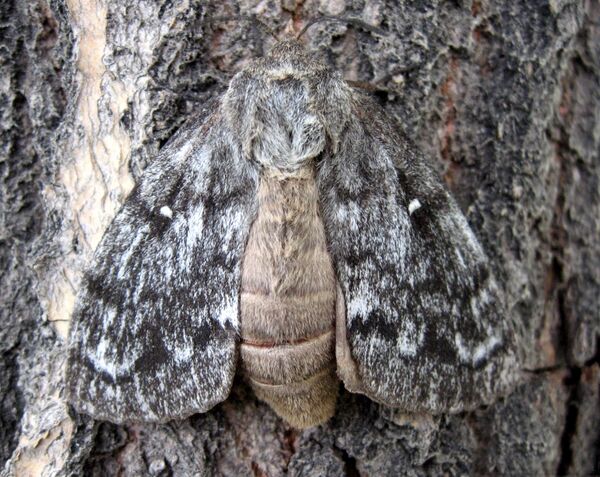 Куколка длиной от 24 до 35 мм[2]. Голова у самцов более вытянутая, чем у самок. На голове возле около основания обоих усиков есть по одному оттянутому бугру, у самцов посередине неё имеется глубокая узкая ложбинка, у она глубокая и широкая. По бокам головы перед усиками имеются многочисленные игловидные шипики, которые с каждой стороны составляют широкую продольную полоску, за усиками имеются отдельные шипики. Затылок голый и широкозакруглённый. Усики прижаты к бокам, они обогнув бёдра второй пары ног, прижаты к вентральной стороне тела, здесь они спирально закручены, у самца они образуют три, у самки два витка[2].