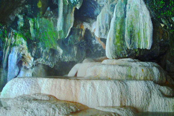 Природный мост на протяжении веков образовывался из травертина и горячих минеральных вод температурой около 250 °C, источник которых находится там же, прямо под мостом. Скопления травертина по обе стороны реки и образуют естественный арочный мост, основанный на множестве сталактитов, почти полностью разрушенных многочисленными посетителями. Стены ущелья окрашены источником в розовый, жёлтый и зелёный цвета. Минеральные источники, находящиеся прямо под мостом, впадают непосредственно в реку Воротан, делая поток воды более обильным. Минеральные источники под мостом и в прилегающей местности дают общий расход воды 500—600 литров в сутки. Горячая вода минеральных источников природного моста создала бассейны и обладает целебными свойствами. В древние времена армянские богачи посещали пещеру под мостом в летние месяцы, чтобы принять целительную ванну. На месте древних бассейнов возле источников созданы небольшие ванны, где население ныне использует воду в лечебных целях. Согласно традиции, прошедшего под мостом ожидает счастливая жизнь[1].