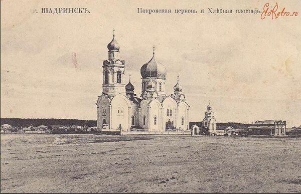 Церковь Покрова Пресвятой Богородицы заложена 27 апреля (9 мая) 1867 года на Торговой площади, ныне район стадиона, главным строителем был шадринский мещанин Василий Алексеевич Волчихин. Главный престол освящен в 1897 году в честь Покрова Пресвятой Богородицы, южный, сооруженный иждивением шадринскаго мещанина Адриана Ивановича Ефимова, заложен был в честь св. Афанасия Александрийского, но по желанию прихожан освящен в 1900 году в честь Вознесения Господня, и северный, сооруженный иждивением шадринскаго мещанина Василия Ивановича Ефимова, заложен в честь св. великомученика Георгия. Посредине её был купол в русско-византийском стиле, окружённый по углам четырьмя башенками, а над папертью устроена в этом же стиле трехъярусная колокольня. 30 декабря 1927 года закрыта, в 1937 году разобрана на кирпич.
