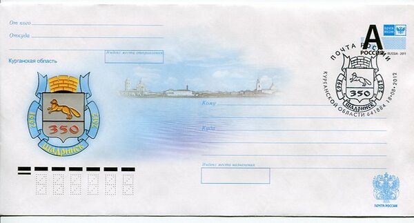 В 2012 году выпущен почтовый конверт на котором изображены геральдические символы и вид Шадринска в начале XX века[77].