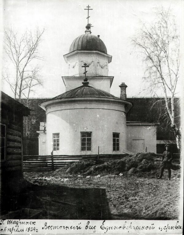 Церковь Троицы Живоначальной устроена на средства шадринского купца Зотика Черепанова и освящена 18 (30) декабря 1839 года, хотя единоверческий приход в г. Шадринске был открыт в 1832 году. 17 декабря 1933 года закрыта и разобрана на кирпич, была в районе ул. Октябрьская, 92.