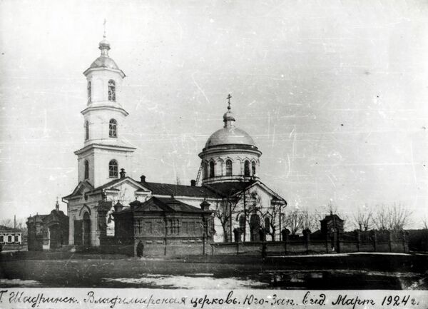 Церковь Св. Равноапостольнаго князя Владимира заложена в 1891 году в северо-восточной части города на Сенной площади (ныне перекресток улиц Степана Разина и Ленина) и освящена 11 (23) ноября 1893 года. Изначально представляла собой каменную часовню, в 1899 году преобразована в церковь. 3 октября 1932 года закрыта, в здании располагалось общежитие студентов профтехникума. Разобрана в 1946—1947 годах.