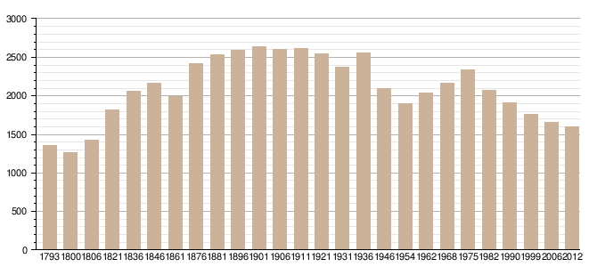 В коммуне в 2012 году проживало 1602 человека, из них 10,1 % младше 14 лет, 9,2 % — от 15 до 29 лет, 12,5 % — от 30 до 44, 19,2 % — от 45 до 59 лет, 48,9 % старше 60[3].