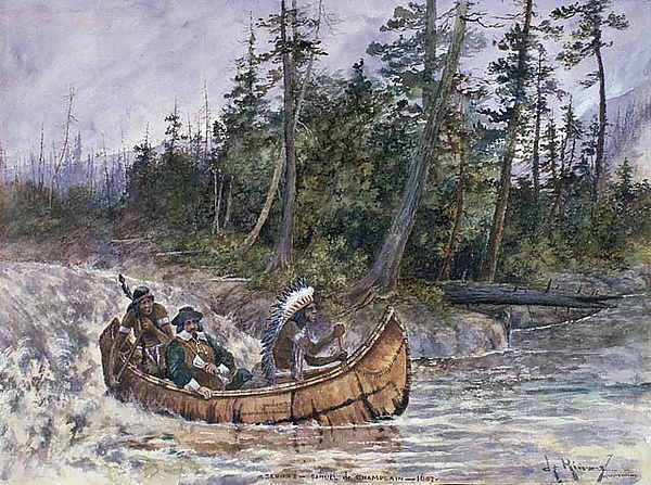 В 1609—1615 годах Шамплен пытался обнаружить водные пути, ведущие из Квебека к Тихому океану. В 1616 году первым приплыл из Атлантики в озеро Гурон и заключил союз с индейским племенем гуронов.