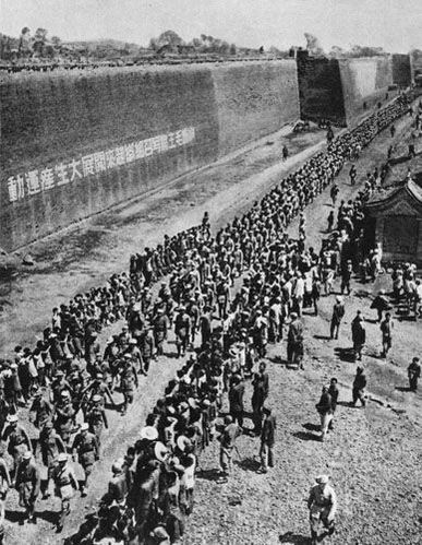 Когда в 1937 году началась японо-китайская война, то находившиеся в советском районе в провинции Шэньси войска китайских коммунистов были в соответствии с соглашением с партией Гоминьдан объединены в 8-ю армию. Двинувшись на восток и форсировав Хуанхэ, они вышли на границу провинций Шаньси и Хэбэй в районе горы Утайшань. 25 сентября 115-я дивизия 8-й армии разгромила японцев в Пинсингуаньском проходе, а затем 8-я армия действовала в японских тылах во время битвы за Синькоу.