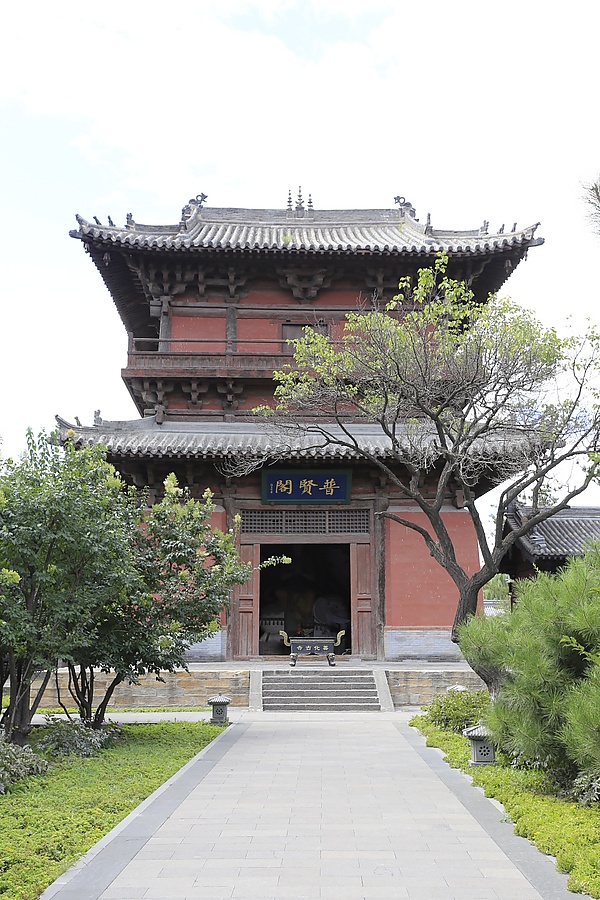 Павильон Пусянь (кит. упр. 普贤阁, пиньинь Pǔxián Gé) был изначально построен во времена империи Ляо, в 1930-е годы он был изучен Лян Сычэном. Он сообщил о сильном повреждении двухэтажного здания[4]. Первый этаж являлся миниатюрным зданием с двумя фресками, на втором этаже находилась статуя Бодхисаттвы Самантабхадры[15].