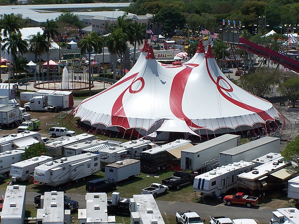Палатка удерживается с помощью столбов, которые изначально были деревянными, но теперь делаются из стали. Проводится различие между круглыми и решетчатыми столбами, которые сильно затрудняют зрительное восприятие. Наиболее распространены цирковые палатки с четырьмя кольями (четыре мастера). Когда-то цирки обычно путешествовали с палатками на 8-12 столбов.