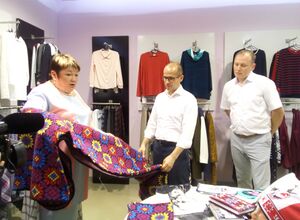 Глава Удмуртии А. Бречалов знакомится с ассортиментом фабрики «Шарканский трикотаж» - ООО «Шарканский льнозавод»