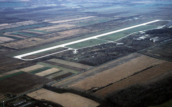Военный аэродром существовал на этом месте уже с 1940-х годов. В 1950-х здесь размещался венгерский военный аэродром. В 1960—1990 годах — советский военный аэродром. Имеющаяся бетонная Взлётно-посадочная полоса длиной 2 тыс. 500 м была построена в 1982 году.
