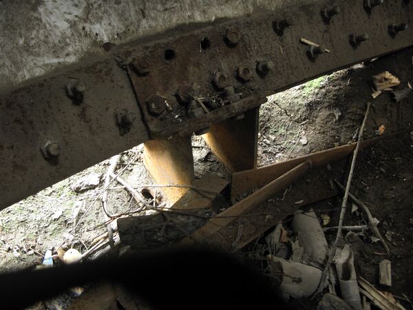 Внутри шара было просторно, в результате чего туристы могли гулять внутри, экспериментируя со звуком (внутри шара была необычная акустическая среда) или рассматривая свод этого сооружения. По нижнему краю, изнутри, к шару болтами привинчена металлическая полоса. К полосе, на небольшом расстоянии друг от друга, болтами прикреплены двойные металлические колья, вбитые в землю (или стержни, уходящие в бетонное основание). Этих кольев много, они прикреплены к полосе вдоль всей окружности соприкосновения сферы с землёй.