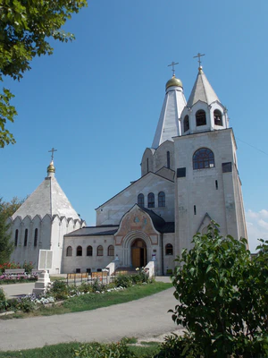 - Также шатрами увенчаны пять глав Успенского собора Святогорской Лавры (1859—1868), построенного А. Горностаевым[39]. Собор подобен Тоновским постройкам, но в отличие от них сохранился до нашего времени.
