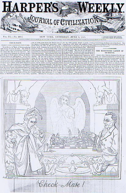 Наиболее оригинальной версией данной картины является опубликованная в американском политическом журнале «Harper’s Weekly» от 3 июня 1865 года карикатура. Называлась она «Шах и мат», имела подзаголовком «Слегка изменённая „Игра на жизнь“ Ретча». Подпись под карикатурой — «A. L. Carrol fecit». Оригинальность этого варианта состоит в параллели с кровавым конфликтом в истории Соединенных Штатов — Гражданской войной 1861—1865 между Севером и Югом. Справа изображён Дядя Сэм — персонифицированный образ Соединённых Штатов Америки, который играет белыми фигурами; слева — Дьявол, представляющий Джефферсона Дэвиса, главу мятежной Конфедерации. Рядом с ним британский Лев, символизирующий в данном случае симпатии Великобритании к Югу. Две ладьи Дэвиса, уже вышедшие из игры, изображены с развевающимися белыми флагами (знак капитуляции) и надписями «Саванна» и «Ричмонд» (где были одержаны победы армии США). Белый ферзь размахивает флагом освобождения, на котором нанесено название Федерального округа Колумбия. Белые пешки изображены как рядовые идущие в атаку. Белые потеряли несколько фигур, три из них, голые и истощенные, находятся на краю стола, что указывает на безжалостность конфедератов к пленным[14].