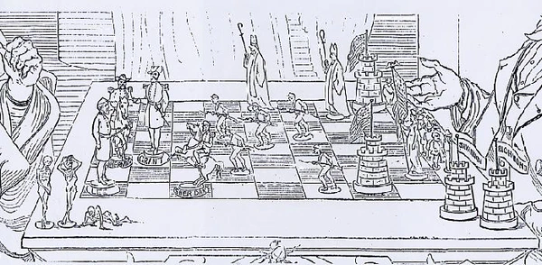 Существует достаточно известная легенда о знаменитом американском шахматисте Поле Морфи, который, рассматривая запечатлённую на этом изображении шахматную позицию в течение короткого времени, нашел способ для молодого человека вырваться из ловушки своего противника.