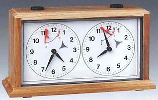 Шахматные часы — часы с двумя раздельными циферблатами, одновременно идут только одни часы. Шахматные часы бывают механические и электронные(цифровые). Арбитр или игрок играющий чёрными фигурами на старте игры запускает таймер оппонента. Игрок с белыми фигурами должен сделать ход. Игрок или арбитр могут прекратить игру, как только у оппонента игрока превышено временное ограничение. Пока временное ограничение прошло незамеченным, игра продолжается. Если игру необходимо приостановить, арбитр останавливает часы. Если необходимо вмешательство судьи, часы может остановить игрок. Ввиду большей точности цифровых часов, цифровые часы являются более предпочтительными при выборе оборудования на турнирах.