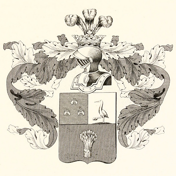 Герб коллежского асессора Николая Шахова: щит разделён на 3 части. В первой части, на голубом поле, 3 золотые пчелы. Во второй части, в серебряном поле, журавль, держащий в лапе камень. В третьей части, в красном поле, хлебный сноп. Щит увенчан обыкновенным дворянским шлемом и тремя страусиными перьями[7].