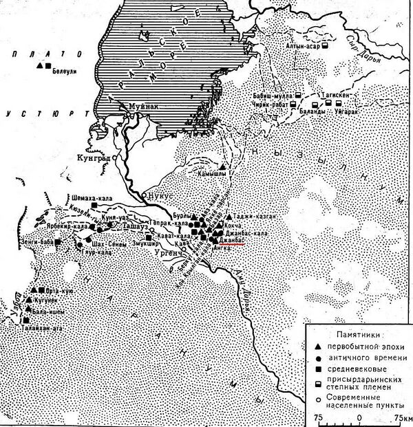 Ак-кала - Акчагелин — Дарган - Девкесен — Джигербент — Диярбекир - Замакшар — Калалыгыр — Канга-кала - Капарас - Кёнеургенч — Куня-Уаз - Кырк-молла - Кюзелигыр - Садвар