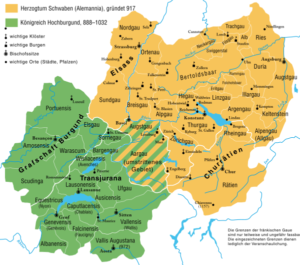 После смерти короля Арнульфа в 900 году в Швабии усиливается влияние местной знати, особенно двух родов — Бурхардингеров, которые ещё в 807 году утвердились в маркграфстве Реция, и Агалольфингеров, владевшие титулом пфальцграфа Швабии.