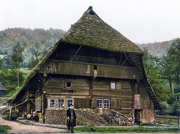 - «Языческий дом» (Heidenhaus), или «горный дом» (Höhenhaus), — самая древняя форма шварцвальдской фермы, в основном встречается в Высоком Шварцвальде. Жилые комнаты такого дома обращены в сторону склона холма. Происхождение названия объясняется так: «Фермеры Высокого Шварцвальда сохранили до наших дней знание о том, как строить уникальные средневековые дома с разными функциональными элементами под единой крышей. Возможно, поэтому они считали, что эта форма дома была изобретена язычниками, и называли его „языческим домом“. Несомненно, этот термин должен был символизировать архаичный вид этого типа дома и его предположительно древнее происхождение…»[4]