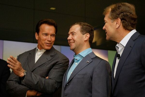 В 2010 году Шварценеггер дважды встречался с президентом России Дмитрием Медведевым: в ходе визита российского лидера в Калифорнию и во время своей поездки в Москву. На переговорах политики обсуждали применение опыта калифорнийской Силиконовой долины в российском проекте «Сколково».