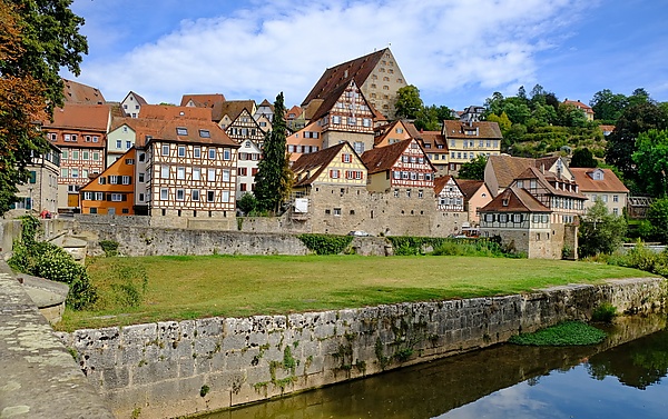 - К югу от старого города над долиной Кохера возвышается монастырь Комбург, окружённый средневековыми стенами с семью башнями. До секуляризации в 1803 году имел статус имперского аббатства. Сейчас монастырь занимает институт повышения квалификации.