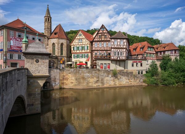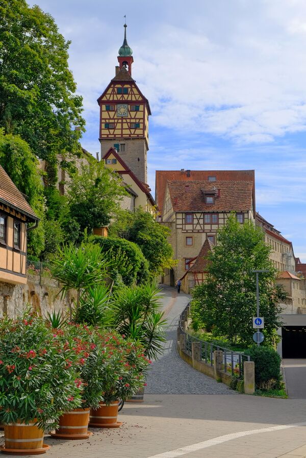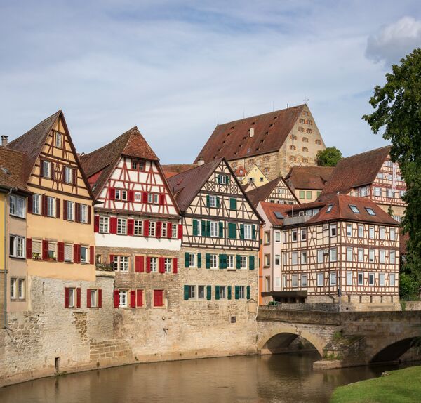 - Церковь Св. Михаила — главный храм города — представляет собой зальную церковь, характерную для зондерготики в Швабии и Франконии. Неф построен в 1427-56 гг., хоры — в 1495—1525 гг., башня — в 1573 году. Внутри интересны: каменная фигура архангела Михаила, попирающего дьявола (ок. 1525); несколько старинных полиптихов (из которых главный датирован 1460 годом); фрески XV века на столбах (напоминают гобелены); ценные витражи XV—XVI вв.; подземный оссуарий. Это один из протестантских храмов Швабии, наименее пострадавших во время Реформации.