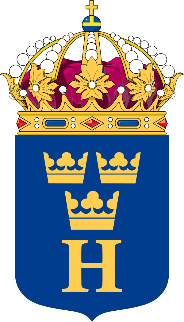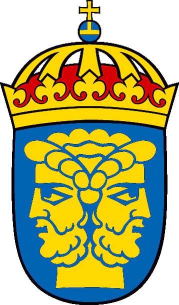 Сигтуна (980), один из старейших городов Швеции, известна по эпохе викингов и примечательна расположенными на её территории руническими камнями. В Средневековье город располагал своим монетным двором, и, согласно легенде, некоторое время был резиденцией короля. Этим и объясняется появление на гербе короны, которая стала элементом созданной в 1311 году городской печати. В 1971 году герб Сигтуны был вручён одноимённой коммуне[45]. Кальмар (1100) обладает старейшим городским гербом в Швеции, упоминание о котором датировано 1247 годом[46]. Укреплённая башня (швед. borgtorn) изображалась на щите изначально, в то время как две звезды появились на щите в конце XIII века. Герб сохранился фактически в первозданном виде[47]. Уппсала (1164) служила центром шведского государства с древности. С XII века город стал церковной столицей государства, а в 1477 году там появился первый в Швеции университет. История происхождения городского герба неизвестна, однако появление на нём льва несомненно датировано 1737 годом. С 1943 года городская печать стала полноценным геральдическим символом Уппсалы[48]. До 1737 года на городской печати изображалась церковь, вид которой неоднократно менялся, — та же судьба постигла и герб другого епископального города, Скары[49]. Арбуга (XIII век) стала первым городом, в котором заседал шведский парламент (швед. Riksdag). Основной для герба Арбуги послужила печать, которой с 1330 года заверялись городские документы[50]. На историческом гербе города был представлен орёл с тремя медальонами, расположенным на крыльях и хвосте, а также буква «A», окружённая двумя звёздами. В 1969 году буква исчезла, а звёзды были помещены на крылья орла. Этот герб стал официальным символом муниципалитета в 1974 году[51]. Стокгольм (1252) — нынешняя столица и крупнейший город страны. На оригинальной городской печати изображался непосредственно силуэт города. В 1376 году новым символом Стокгольма стала голова Эрика IX Святого, которая присутствует на гербе и в наше время[52]. В 1920-х годах новой моделью для гербового изображения Эрика Святого была избрана средневековая деревянная скульптура из приходской церкви в Рослагсбру (Уппланд)[53]. При этом личность высеченного из дерева святого с точностью не установлена: возможно, героем скульптуры стал не Эрик IX, но норвежский король Олав II[53]; описание герба же требует изображения Эрика[54]. В 1934 году за гербом был закреплён официальный статус[55]. |