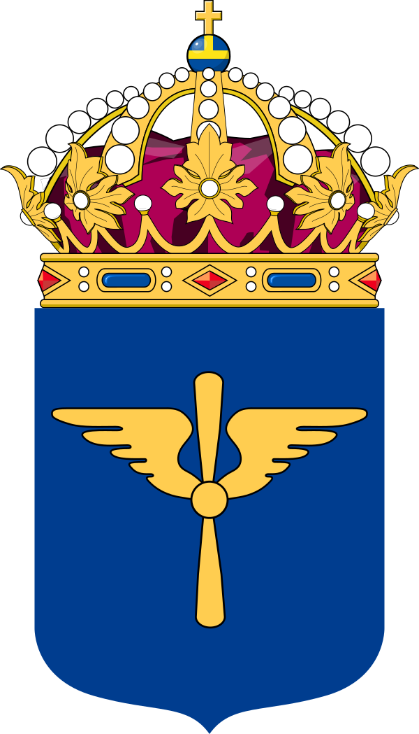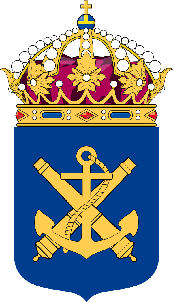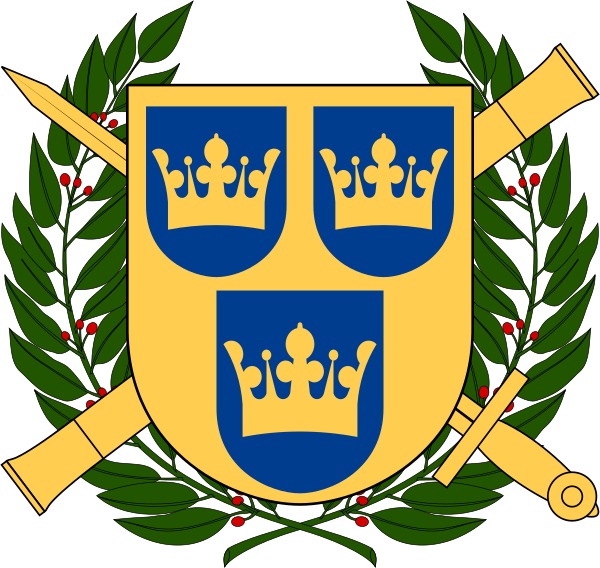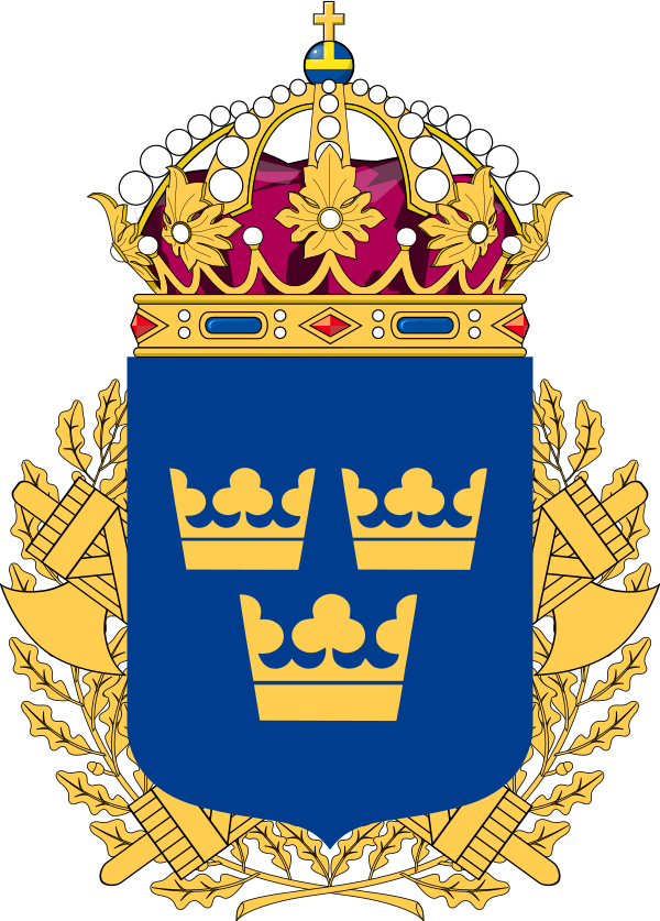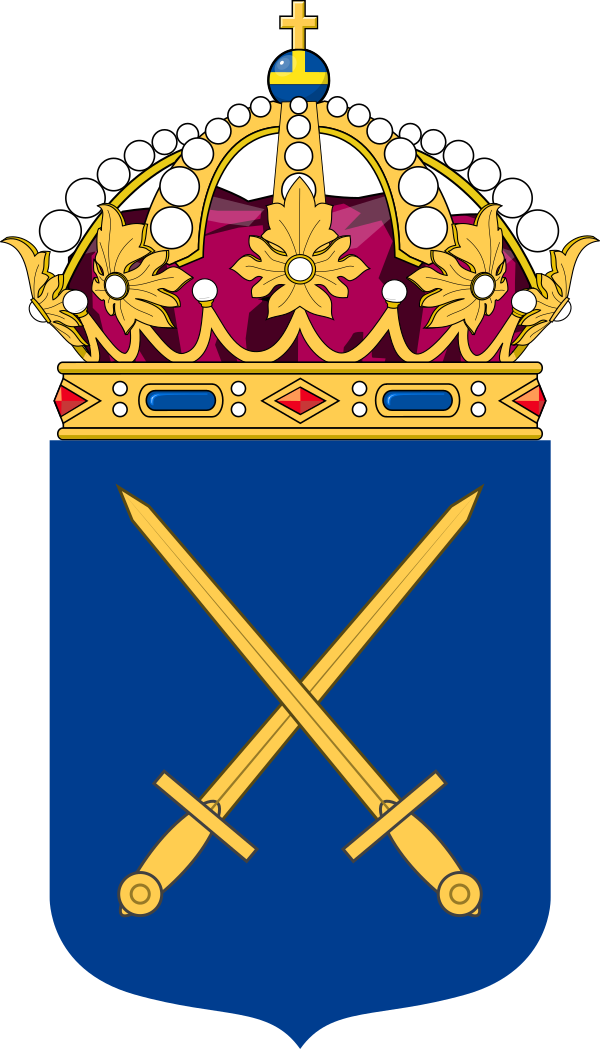 На лазоревом поле герба шведской армии представлены два скрещённых золотых меча. Этот мотив воспроизведён на флаге Генерального инспектора армии[25]. Единственный вертикально расположенный золотой меч, дополненный тремя коронами в крыже, изображён на флаге Командования военного региона[25]. Герб военно-морских сил тоже основан на лазоревом щите, где представлены две пушки в форме андреевского креста; на их фоне располагается якорь на канате[26]. Герб применяется в оформлении личных флагов командиров флота, в том числе Генерального инспектора военно-морских сил[26].