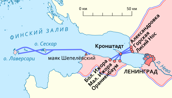В зимний период 1941—42 гг. и 1943—44 гг. был начальным пунктом ледовой автомобильной дороги Шепелёвский маяк — о. Сескар — о. Малый — о. Лавенсаари протяжённостью 71 км.[2] [3]