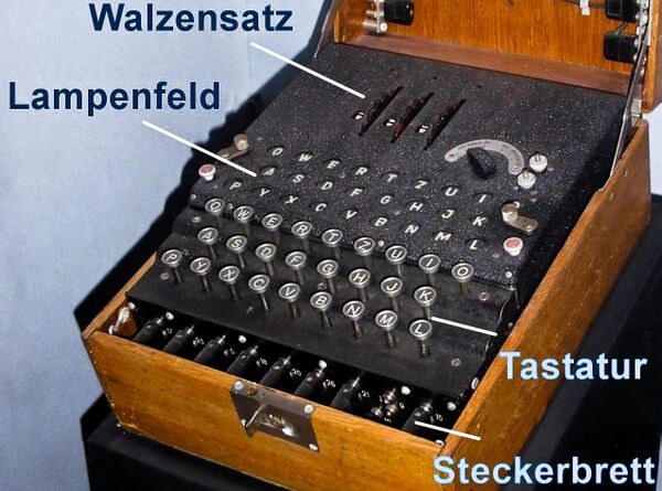 Шифровая машина фирмы, продаваемая под названием «Enigma», первоначально была размещена на коммерческом рынке. Было несколько коммерческих моделей, и одна из них была принята немецким военно-морским флотом (в модифицированной версии) в 1926 году. Немецкая армия приняла тот же механизм (также в видоизменённой версии, несколько отличающейся от ВМС) несколько лет спустя.
