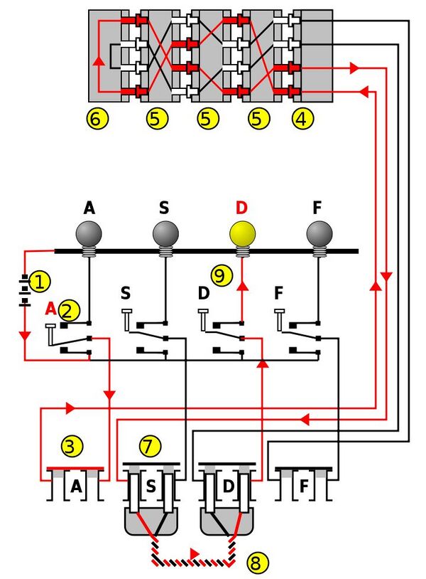 Объединив три ротора из набора пяти, настроив их в 26 позициях и соединив с плагином с десятью парами подключённых букв, в своей машине Шербиус добился 158 962 555 217 826 350 000 (почти 159 квинтиллионов) разных комбинаций символов.