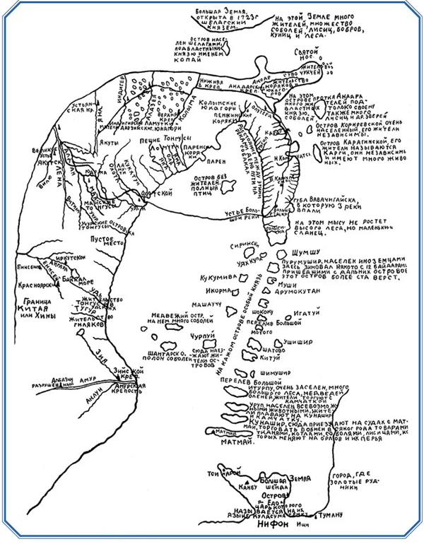 Карта Тихоокеанского побережья Дальнего Востока Афанасия Шестакова была издана в 1726 году во Франции[5].