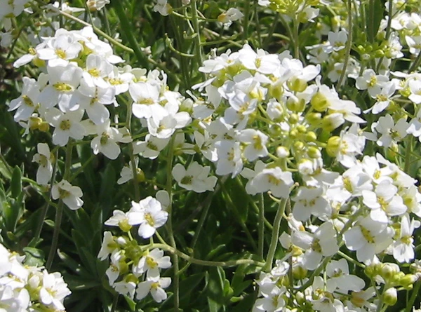 Цветки мелкие, белые (иногда розоватые) с отклонёнными чашелистиками, в кистях, удлиняющихся при плодах. Чашелистики 2,5 мм длиной, лепестки цельные, широко-обратнояйцевидные, на верхушке немного выемчатые, к основанию суженные в короткий ноготок, 4—5 мм длиной, нити длинных тычинок ширококрылатые с зубчиком. По обе стороны коротких тычинок по одной маленькой треугольной медовой желёзке, медианных желёзок нет. Завязь сидячая, столбик удлинённый, остающийся при плодах, рыльце тупое, коротко-двулопастное, створки плода плоские, без жилок, 3-4 мм длины. Цвётет в апреле — мае.