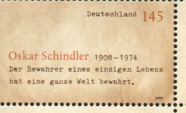 О́скар Ши́ндлер (нем. Oskar Schindler; 28 апреля 1908[1][2][…], Свитави[4] — 9 октября 1974[1][3][…], Хильдесхайм, Нижняя Саксония[5], Германия) — немецкий предприниматель. Известен тем, что во время Второй мировой войны спас жизни около 1200 евреев, наняв их в качестве рабочих на свои заводы, расположенные на территории Польши и Чехословакии, где они производили кухонную утварь и боеприпасы.