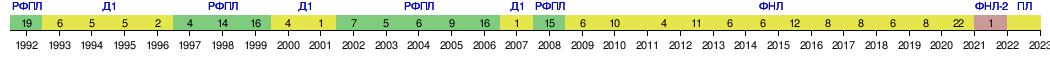 | 1993 | Первая лига, зона Центр | 38 | 17 | 12 | 9 | 78-47 | 46 | 1/128 | |||
