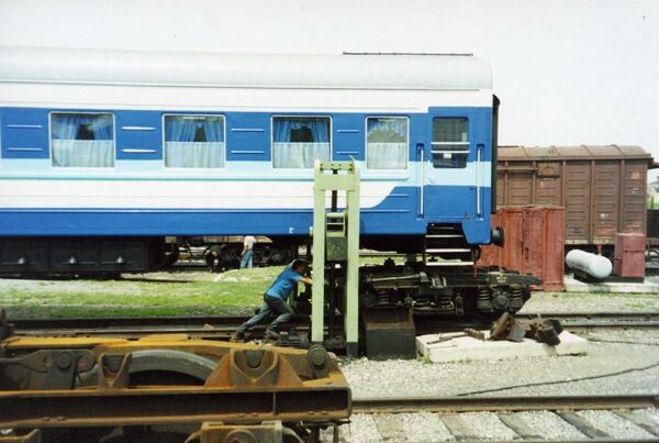 - перестановка вагонов на вагонные тележки, предназначенные для движения по определённой колее;