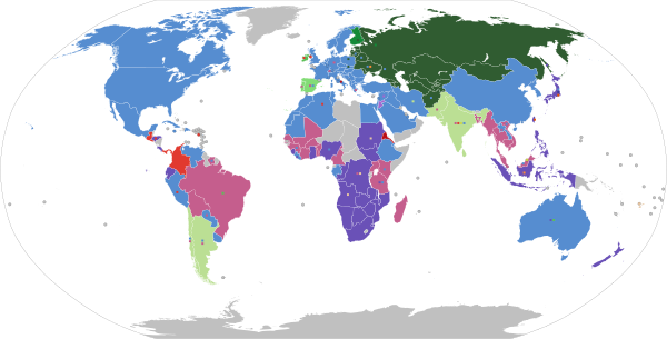- 762 мм: Австралия; Чили; Индия; Сьерра-Леоне; США