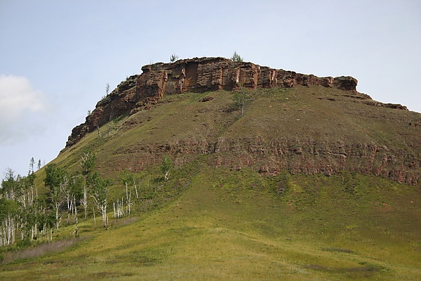 По мере приближения к главному хребту рельеф становится более расчленённым, увеличивается пестрота растительности: на южных, более крутых, склонах распространены луговые, каменистые, реже злаковые и ковыльные степи, а на северных, пологих расположены берёзовые, лиственничные и сосновые леса (лесостепь). В долине реки Белый Июс вверх по течению от д. Ефремкино и до реки Малой Сыи, которая пересекает известняки, пейзаж наиболее живописен за счёт множества экзотических скал, глубоких каньонов. Во множестве мест виднеются входы в гроты и пещеры (см. гроты и пещеры Ширинского района Хакасии). Из 159 пещер Хакасии на этом участке исследованы около 30.