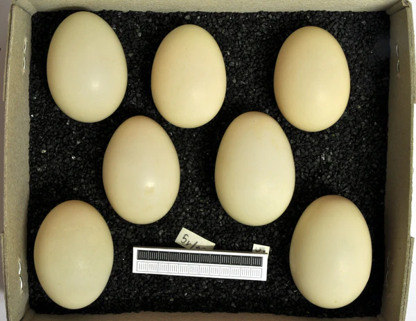 В кладке обычно от восьми до двенадцати яиц. Если кладка теряется или самка покидает гнездо из-за беспокойства, повторные кладки редки. Яйца серо-зелёные, длиной около пяти сантиметров и массой от 35 до 43 граммов. Насиживает только самка. В начале насиживания она покидает гнездо утром и днём по одному разу, перерывы могут длиться до двух часов, но по мере продолжения насиживания сокращаются до 30 минут и могут полностью исчезнуть перед вылуплением птенцов. Общая продолжительность инкубации — 26 дней[3].
