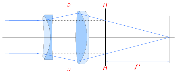В дальномерных фотоаппаратах используются короткофокусные объективы симметричной конструкции, считающейся наиболее оптически совершенной и свободной от дисторсии. Широкоугольные объективы, предназначенные для однообъективных зеркальных фотоаппаратов и кинокамер с зеркальным обтюратором, обладают специальной ретрофокусной конструкцией, позволяющей удлинить задний отрезок[9][10][11]. Это необходимо из-за наличия за объективом подвижных зеркала или обтюратора[12][13]. Упрощённо такое оптическое устройство можно представить, как перевёрнутый телеобъектив, состоящий из отрицательного переднего мениска и положительного заднего компонента[3]. Оптическая сила рассеивающего и собирающего элементов тем выше, чем короче фокусное расстояние по сравнению с задним отрезком. Первый ретрофокусный широкоугольник для кинокамер с зеркальным обтюратором был построен французским оптиком Пьером Анженье в 1950 году[14]. Позднее им был разработан «Angenieux Retrofocus» 35/2,5 для малоформатных фотоаппаратов, ставший образцом многочисленных подражаний[15].