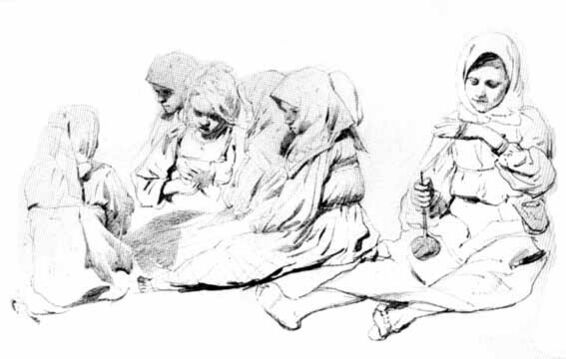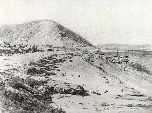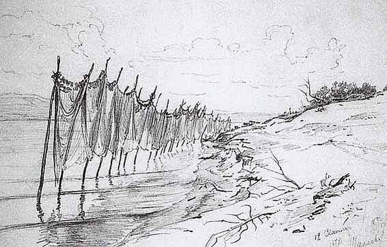 Первый же мой рисунок с группы детей на берегу окончился скандалом. Дети были довольны, получив по пятачку за своё смирное сидение, но сбежавшиеся матери пришли в ужас; они поколотили детей и заставили их бросить деньги, и только отпетые бурлаки соглашались позировать за полкварты.