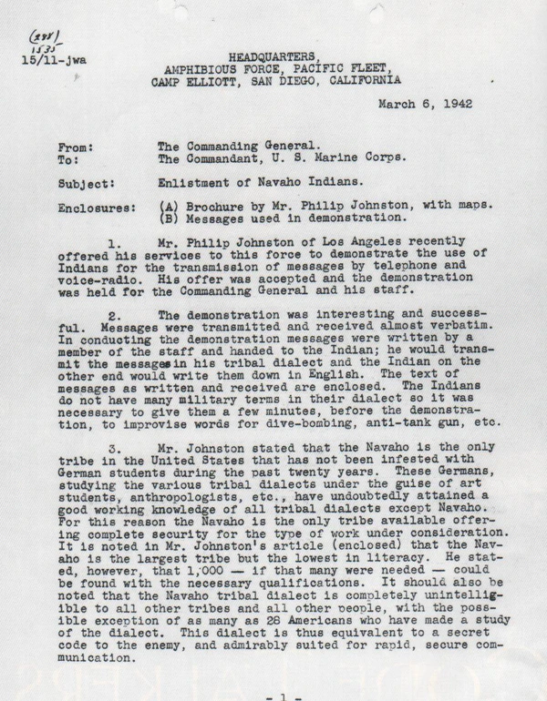 Они передавали донесения по рации и телефону на своём родном языке; принимали участие во всех основных операциях морской пехоты США в Тихом океане в 1942—45 гг.