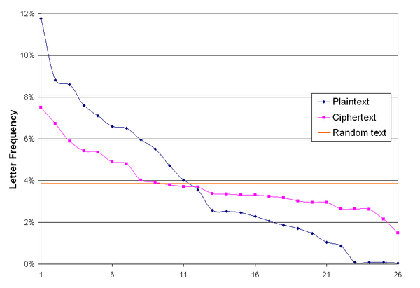 Итак, шифр Виженера получается как повторяющаяся комбинация сдвигов. В общем случае этот шифр не сохраняет частотность встречающихся букв и по этой причине не может напрямую подвергаться статистическому анализу.